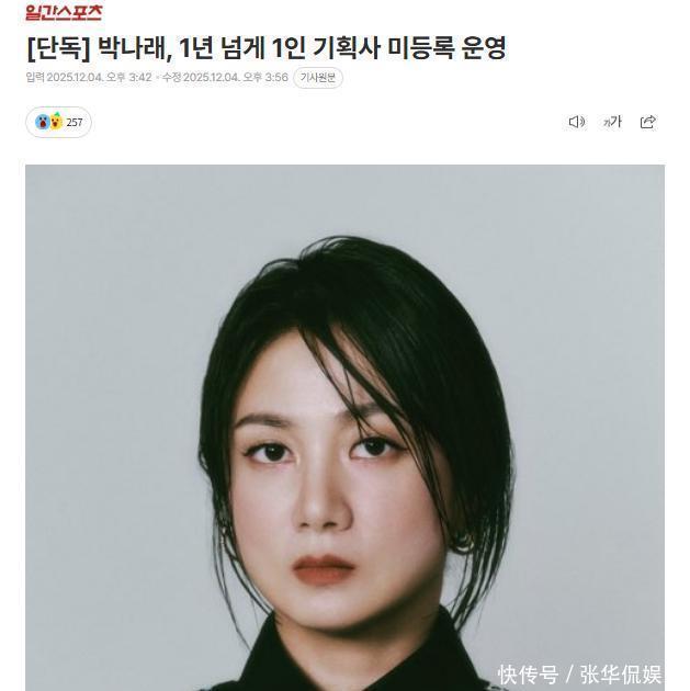与此同时,朴娜莱所属的艺人企划公司也陷入了争议。朴娜莱自去年9月与前所属社合约结束后,一直在其母亲于2018年设立的“株式会社ANPARK”进行活动,该公司实质上充当了朴娜莱的“一人企划社”。然而调查发现,“株式会社ANPARK”仅注册为“服务业及活动代理业”,并未依据韩国《大众文化艺术产业发展法》完成必需的“大众文化艺术企划业”注册程序。根据该法律,未经注册而从事相关经营活动,可面临两年以下有期徒刑或最高2000万韩元的罚款。目前,在相关官方注册名单中无法查询到该公司信息。